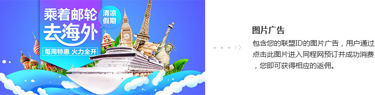 2) 图文广告为包含您的refid的文字链接或图片链接,用户通过此链接进入同程旅游预订并成功消费,您即可获得相应返佣。